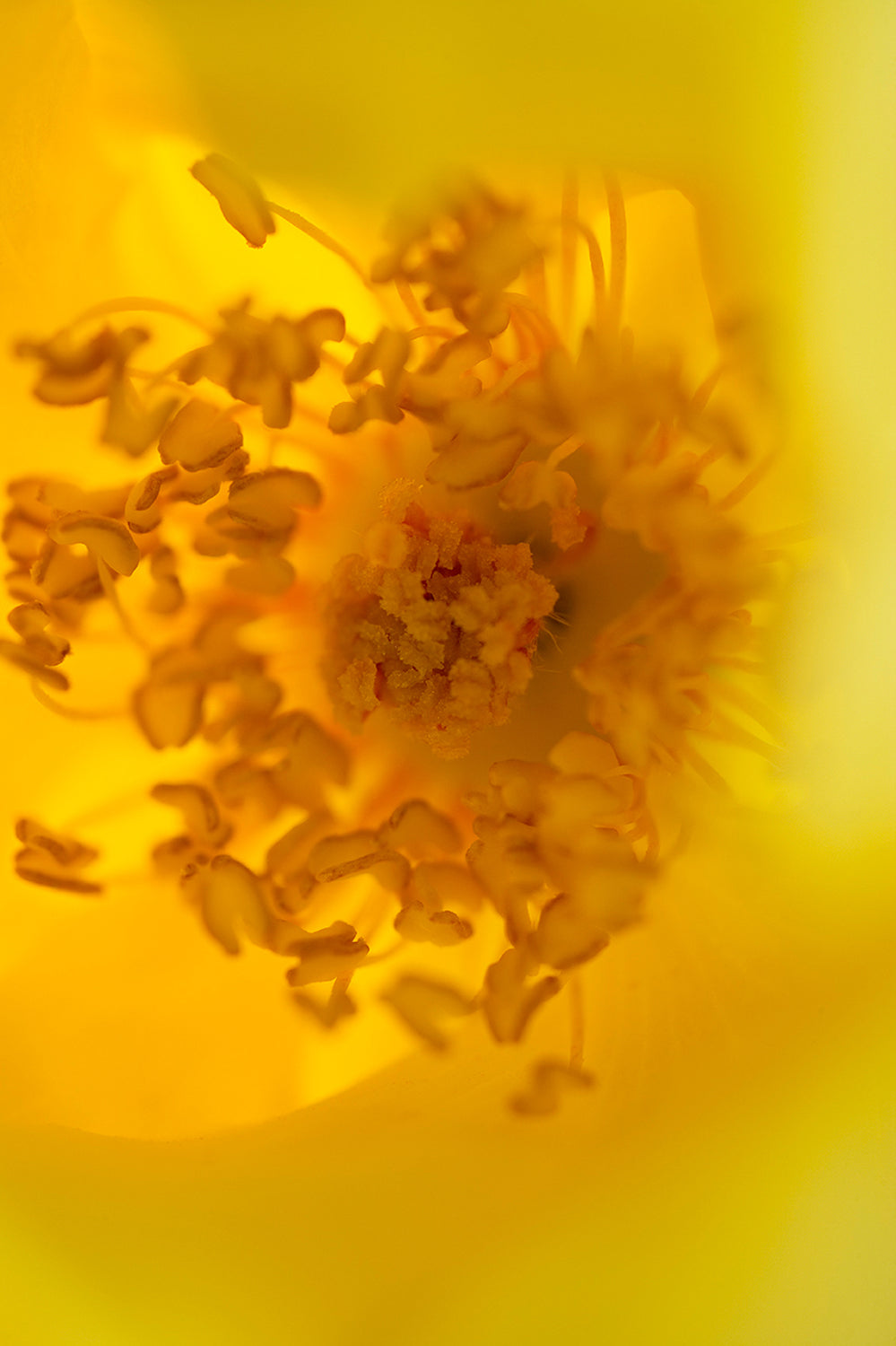 This acrylic glass picture by Sandra Martens features an abstract macro shot of a yellow blossom. The close-up is elegant and brilliant, perfect for any room. It captures the beauty of nature in a unique work of art. An eye-catcher for every viewer.