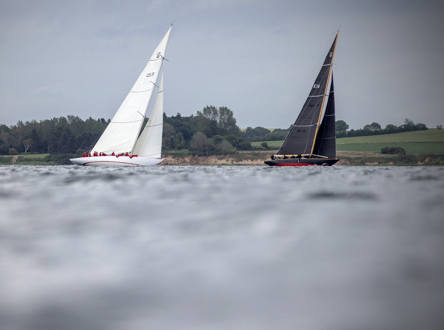 Die Fotografie von Andreas Lindlahr zeigt zwei Segelboote, die entlang einer Küstenlinie fahren. Der Blick des Betrachters wird auf den Kontrast zwischen dem strahlend weißen und dem tiefschwarzen Boot gelenkt. Die geschickte Perspektive vermittelt den Eindruck, als ob man aus dem Wasser zu ihnen emporblickt. Die klare Linienführung und die harmonische Komposition lassen den Betrachter in die Welt der Seefahrt eintauchen und vermitteln ein Gefühl von Freiheit und Abenteuer.