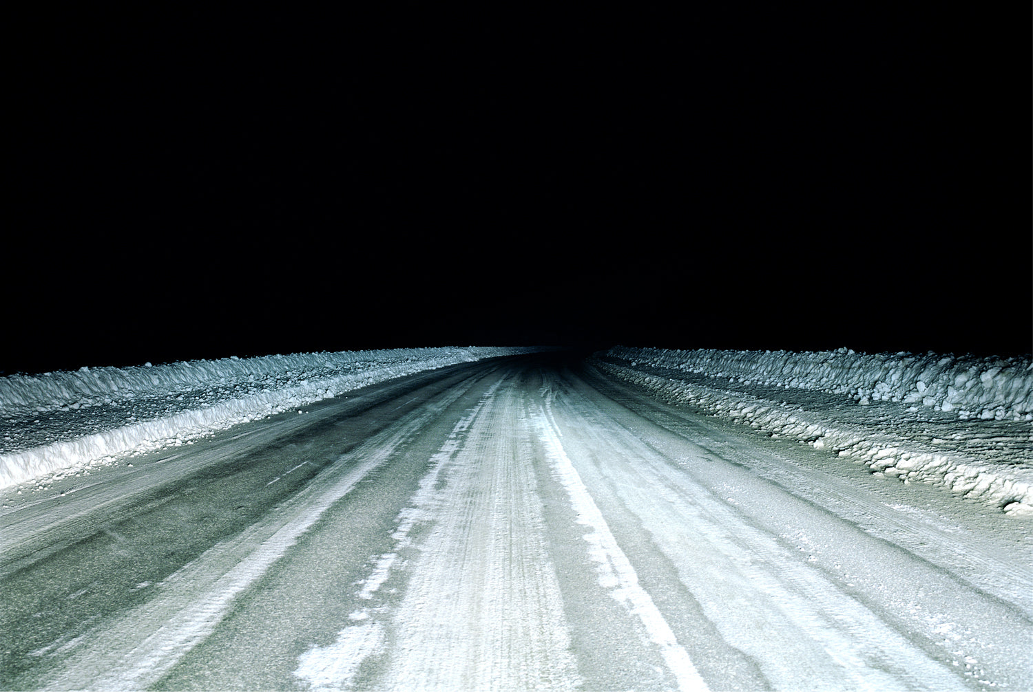 Die Fotografie von Heiko Simayer zeigt eine verschneite Landschaft bei Nacht. Eine einsame Straße schlängelt sich durch die weiße Winterlandschaft, die von einem sanften Lichtschein erhellt wird. Die Schneeflocken glitzern im Licht der Straßenlaterne und verleihen der Szenerie eine märchenhafte Atmosphäre. Die Stille der Nacht und die Kälte des Schnees lassen die Betrachterin innehalten und die Schönheit der Natur bewundern. Ein ruhiges und friedliches Bild, das die Einsamkeit und die Ruhe der Nacht perfekt einfängt.