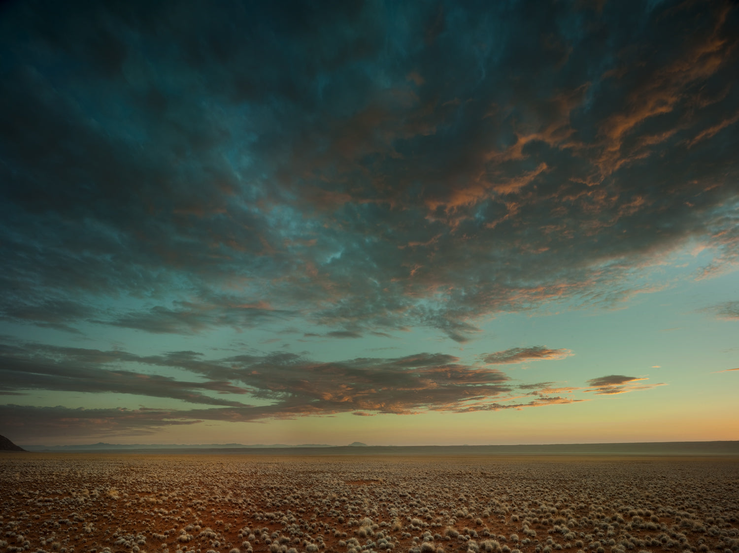 This acrylic glass print depicts a breathtaking desert landscape at sunset, photographed by Heiko Simayer. The cloudy skies lend the landscape an imposing atmosphere. The expansive views and the flat landscape immerse the viewer in nature. The elegant acrylic glass lends the image a brilliant appearance that enhances any room. An impressive work of art that radiates tranquility and freedom and captivates every viewer. A must-have for nature lovers and photography enthusiasts.