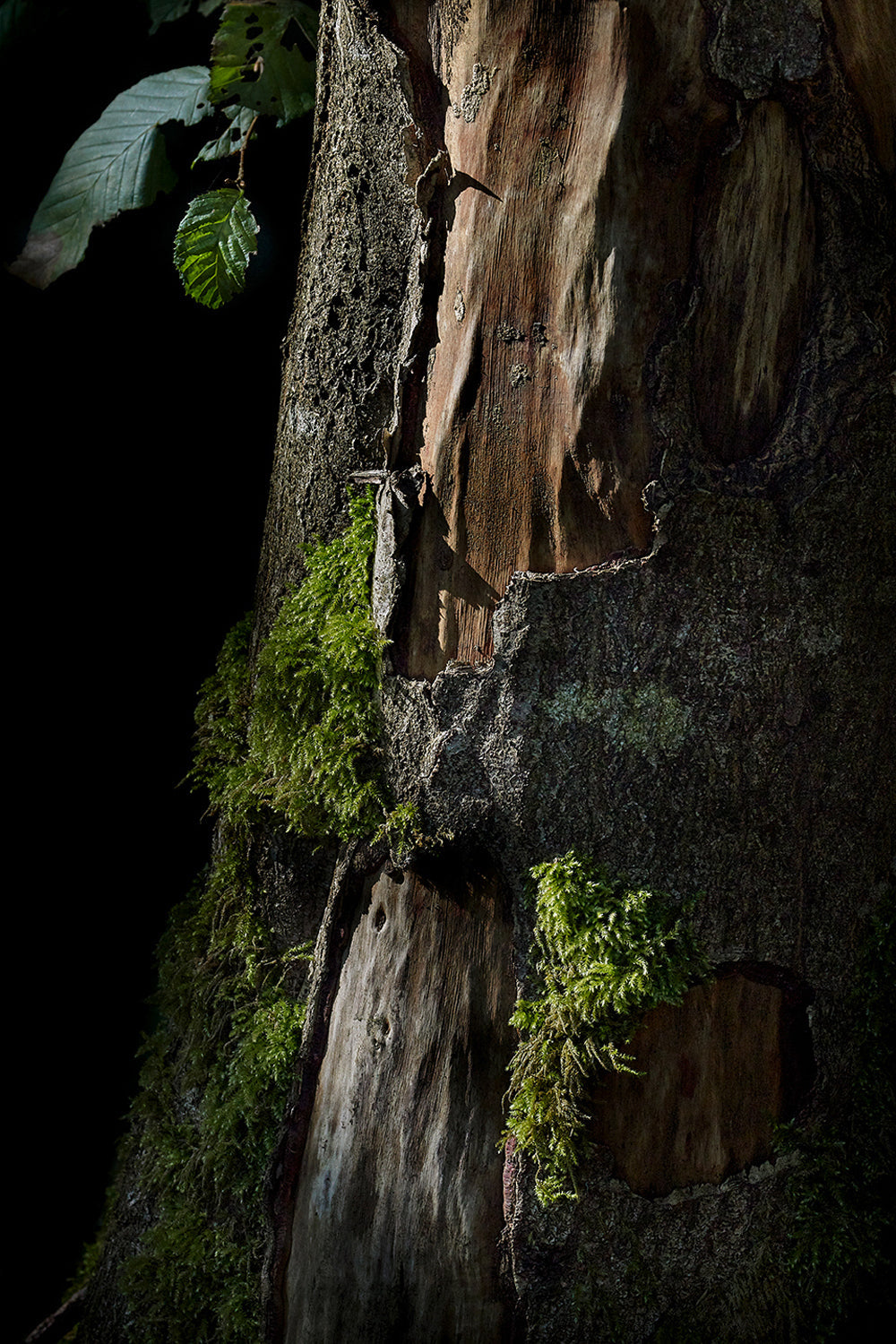 Sandra Martens' acrylic glass print captures the beauty of nature, focusing on tree bark and trunk. The dark background brings out the wood's details. The work captivates with its brilliance and elegance, perfect for any room that needs a natural touch.