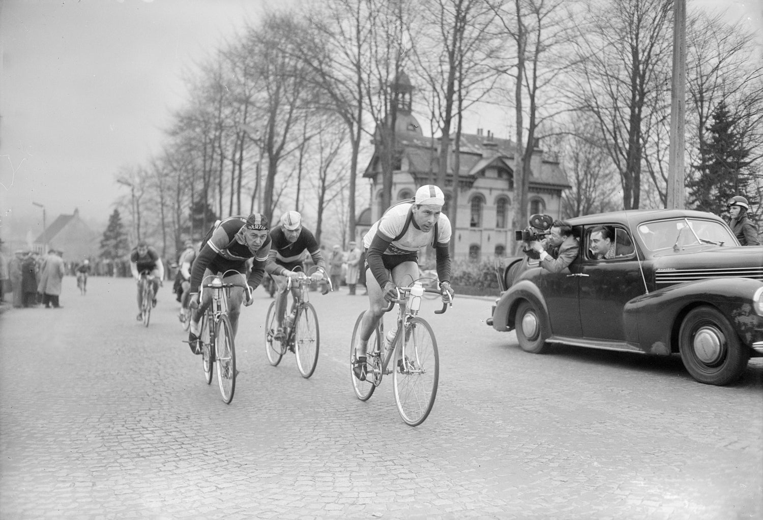 Auswahl historischer Rennfotografie mit dokumentarischem Charakter. Körnige Strukturen, hohe Kontraste, sichtbare Bewegungsspuren. Konzentration auf Körperhaltung, Anstrengung, Straßenführung und authentische Rennsituationen. Keine Inszenierung, reine Beobachtung.