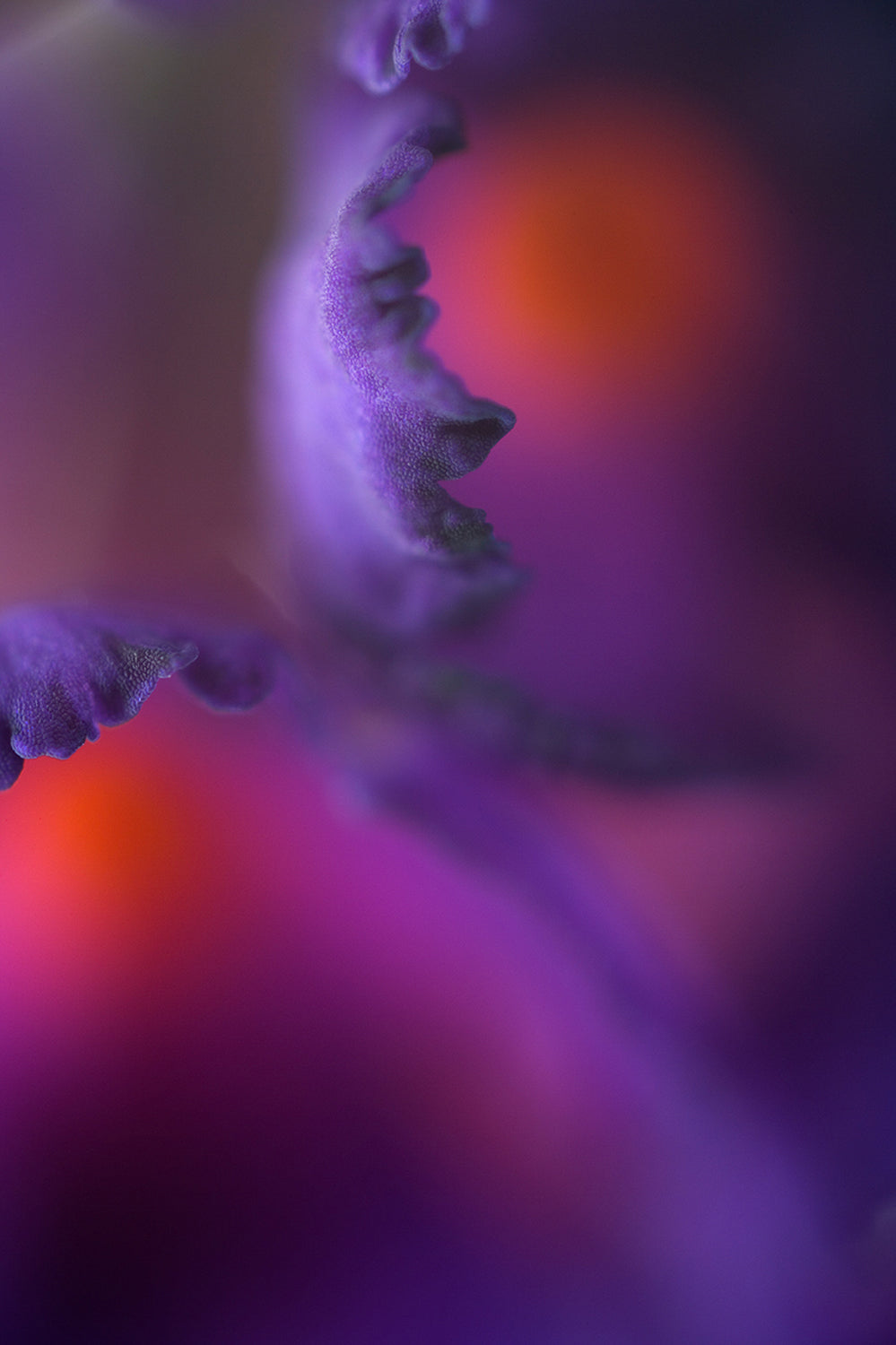 Die Makroaufnahme von Sandra Martens zeigt eine abstrakte Nahaufnahme einer lila Blüte. Die Farben Rot und Lila dominieren das Bild und verleihen der Blüte eine intensive und lebendige Ausstrahlung. Die feinen Details der Blüte sind in beeindruckender Schärfe eingefangen, wodurch die Schönheit und Zartheit der Natur hervorgehoben wird. Die abstrakte Darstellung lässt Raum für Interpretation und regt die Fantasie des Betrachters an. Insgesamt ein faszinierendes Kunstwerk, das die Schönheit der Natur in ihrer ganzen Pracht zeigt.